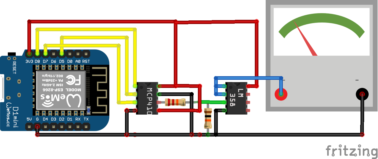 Utilizing a MCP41000 digital potmeter and a LM358 signal amplifier I hope to get a more responsive setup.