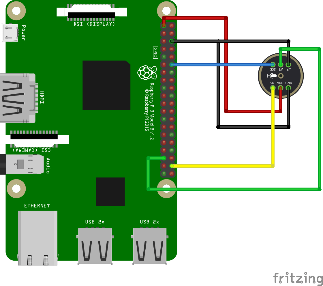 - Below a INMP441 Mems microhone. This is a test for BirdNet recording.